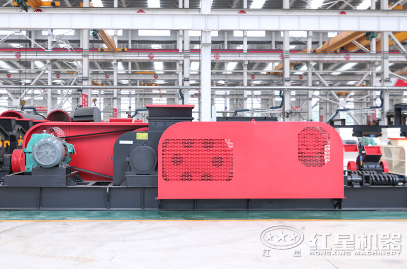 出料粒度的調(diào)節(jié):兩輥輪之間裝有楔形或墊片調(diào)節(jié)裝置,楔形裝置的頂端裝有調(diào)整螺栓,當(dāng)調(diào)整螺栓將楔塊向上拉起時(shí),楔塊將活動(dòng)輥輪頂離固定輪,即兩輥輪間隙變大,出料粒度變大,當(dāng)楔塊向下時(shí),活動(dòng)輥輪在壓緊彈簧的作用下兩輪間隙變小,出料粒度變小。墊片裝置是通過增減墊片的數(shù)量或厚薄來調(diào)節(jié)出料粒度大小的,當(dāng)增加墊片時(shí)兩輥輪間隙變大,當(dāng)減少墊片時(shí)兩輥輪間隙變小,出料粒度變小。
